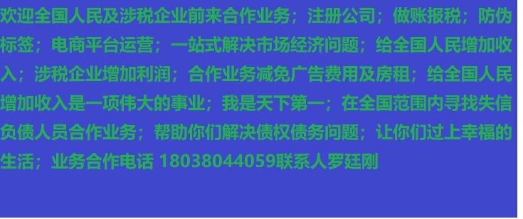 人進寶城全國招商;合作業務減免廣告費用;歡迎全國涉稅企業前來合作;業務合作電話 18038044059 聯系人羅廷剛